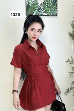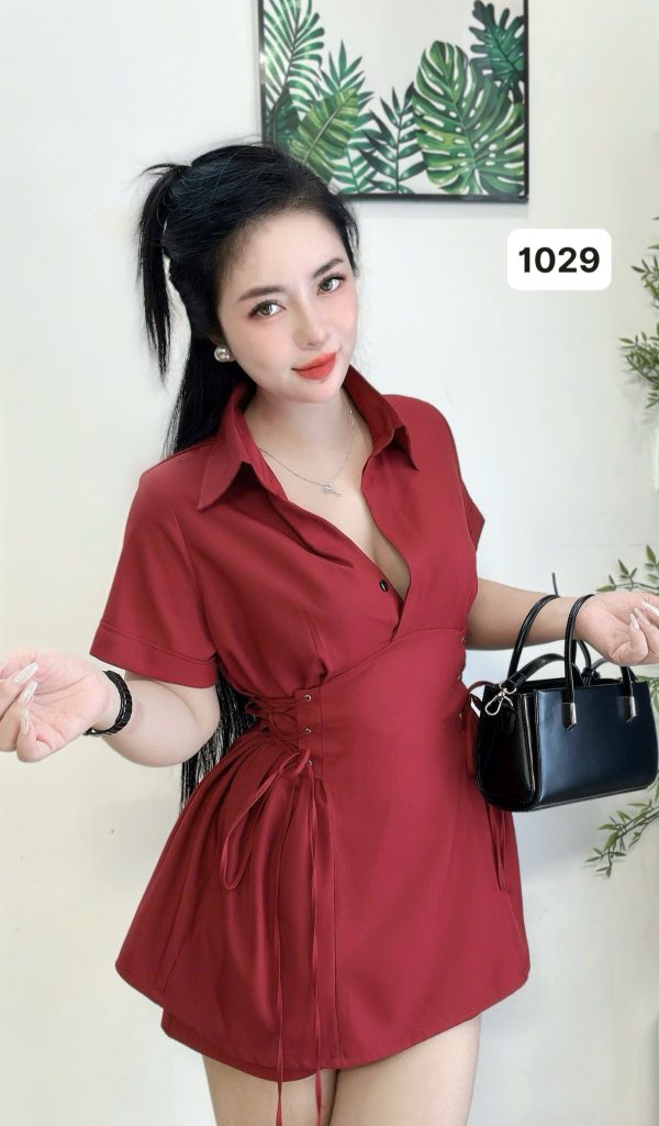 1029 SET (SƠMI ĐỎ ĐÔ)-ĐAN DÂY EO