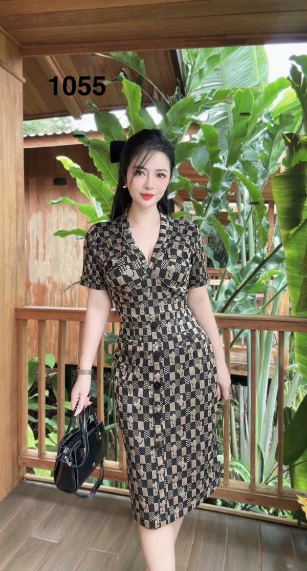 1055 ĐẦM THUN CAO CÂP-(GẤU NÂU)