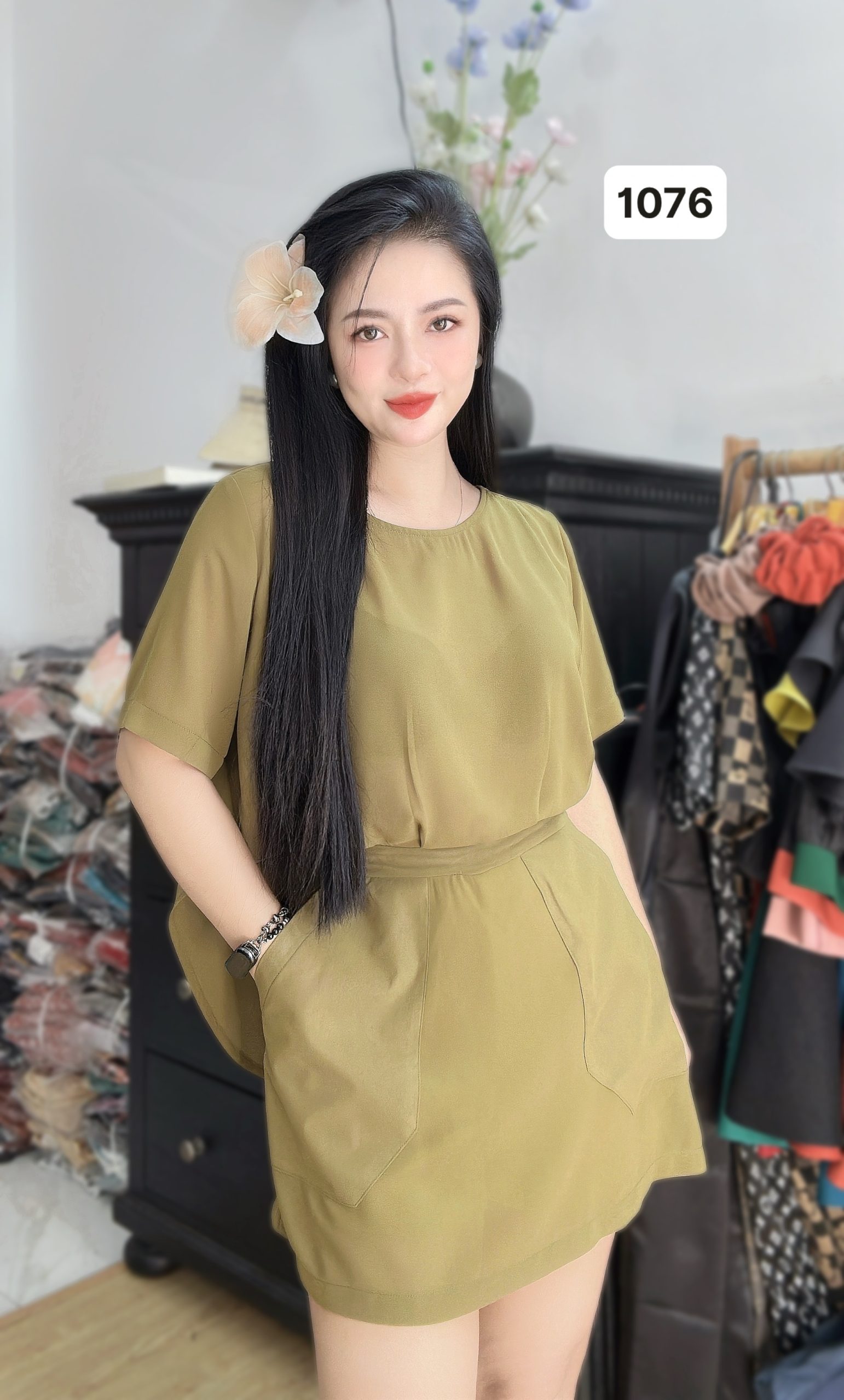 1076 (VOAN-RÊU)SET LIỀN VÁY-NÚT LƯNG