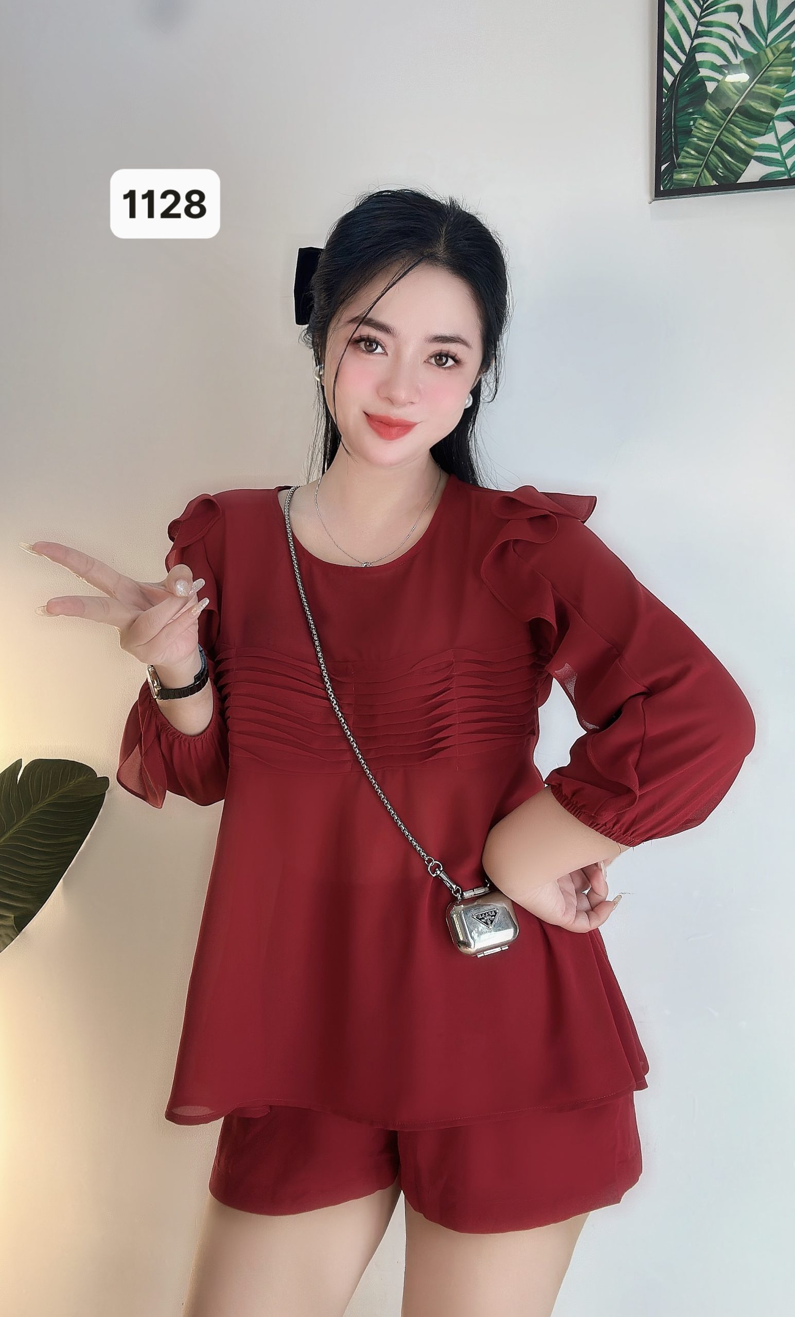 1128 SET VOAN XẾP LY XOÈ-TAY LỬNG(MÀU ĐỎ)