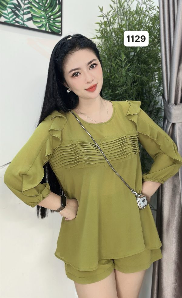 1129 SET VOAN XẾP LY XOÈ-TAY LỬNG(MÀU BƠ)