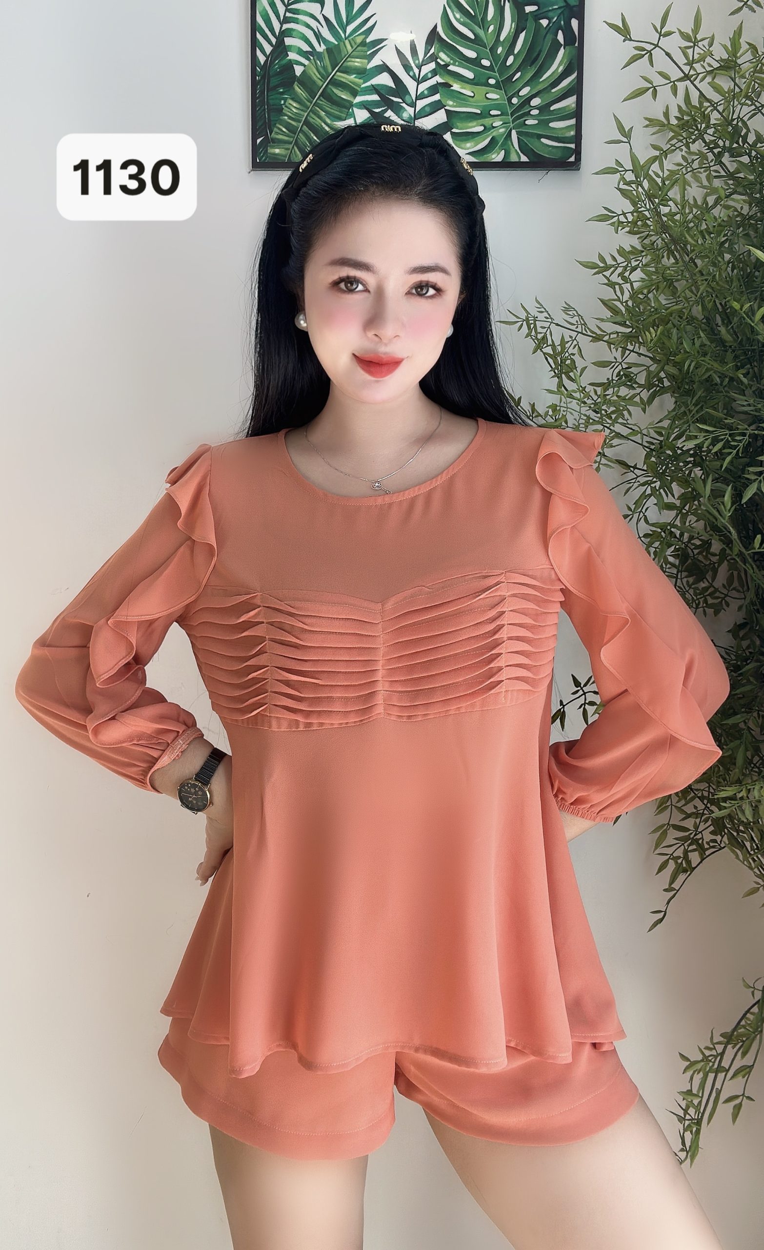 1130 SET VOAN XẾP LY XOÈ-TAY LỬNG(MÀU CAM)